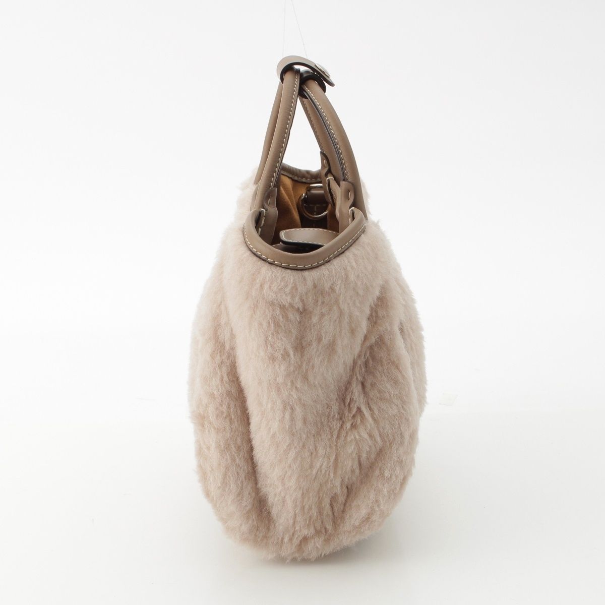 マックスマーラ Tマリン テディベア ファー 2 WAY ショルダー ハンドバッグ ベージュ