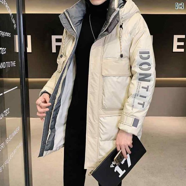 4 XL 秋冬 コーデ メンズ 服 シンプル ファッション オシャレ 大人 かっこいい 大きいサイズ ストリート 紳士服 ミドル丈 フード付き ダウン ジャケット 厚手 ワークジャケット