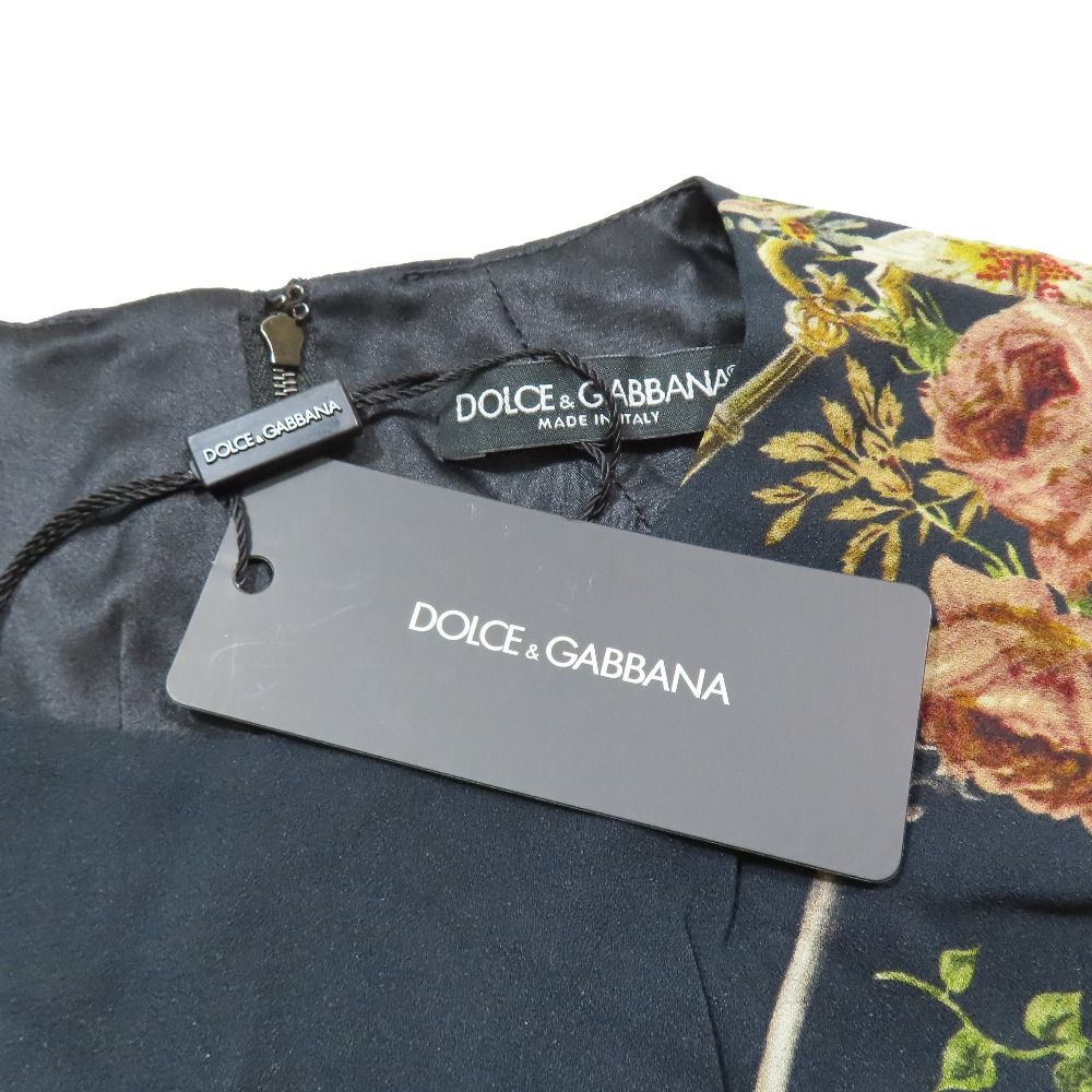 【商品名】DOLCE&GABBANA ドルチェアンドガッバーナ 花柄 ノースリーブ ワンピース ドレス ショート丈 ミニ丈 40 ブラック