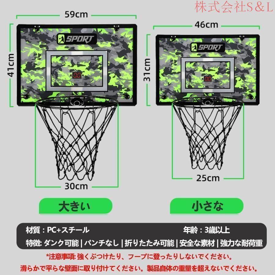 バスケットゴール 室内 屋外 壁掛け ドア掛け式 持ち運び 折りたたみ式 電子スコアリング機能付き 効果音 バスケットボール用ゴール バスケットボール2個付き ト