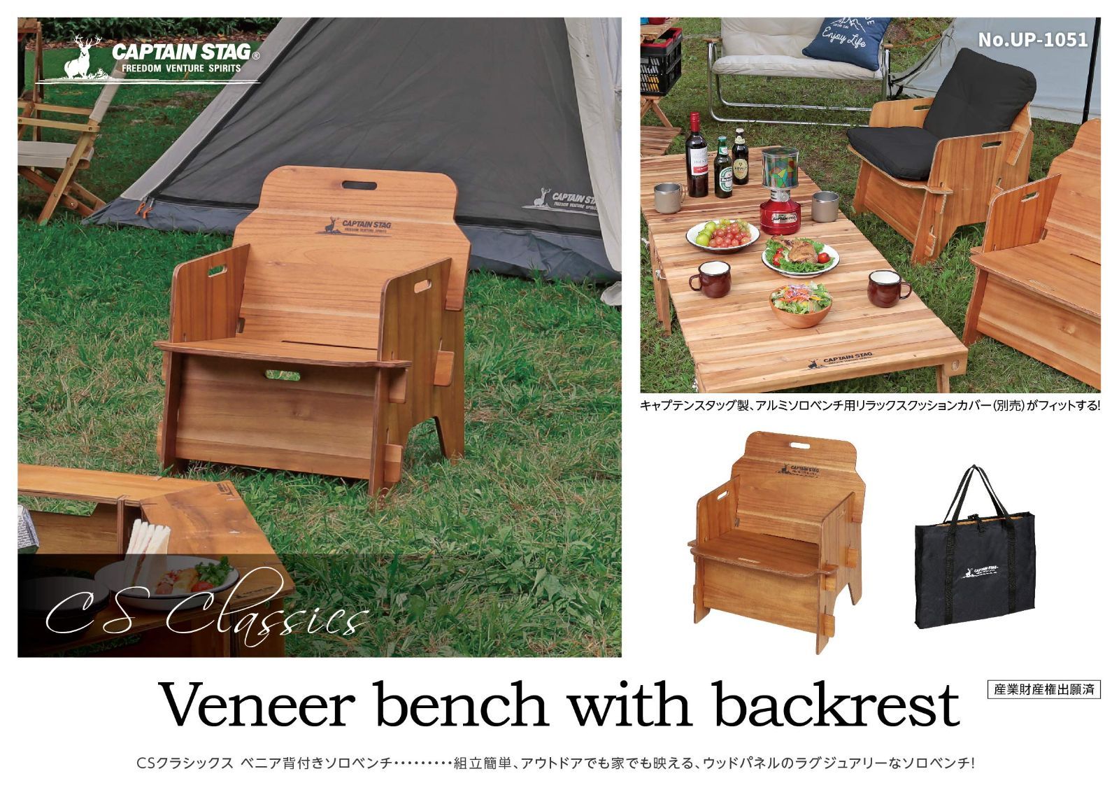 アウトドアチェア STAG チェア ベンチ べニア背付きベンチ 収納バッグ付き キャプテンスタッグ CAPTAIN CSクラシックス UP 1047 1051