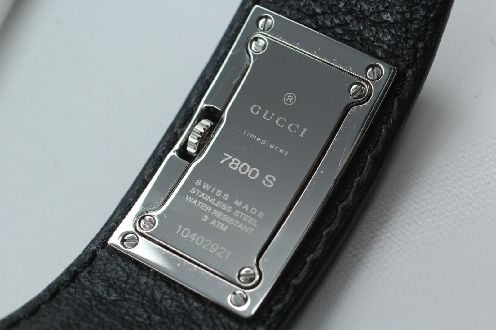グッチ GUCCI 7800 S レディース 腕時計 シルバーケース ブラックレザー クオーツ スイス製 ヴィンテージ スリムデザイン 上品モデル