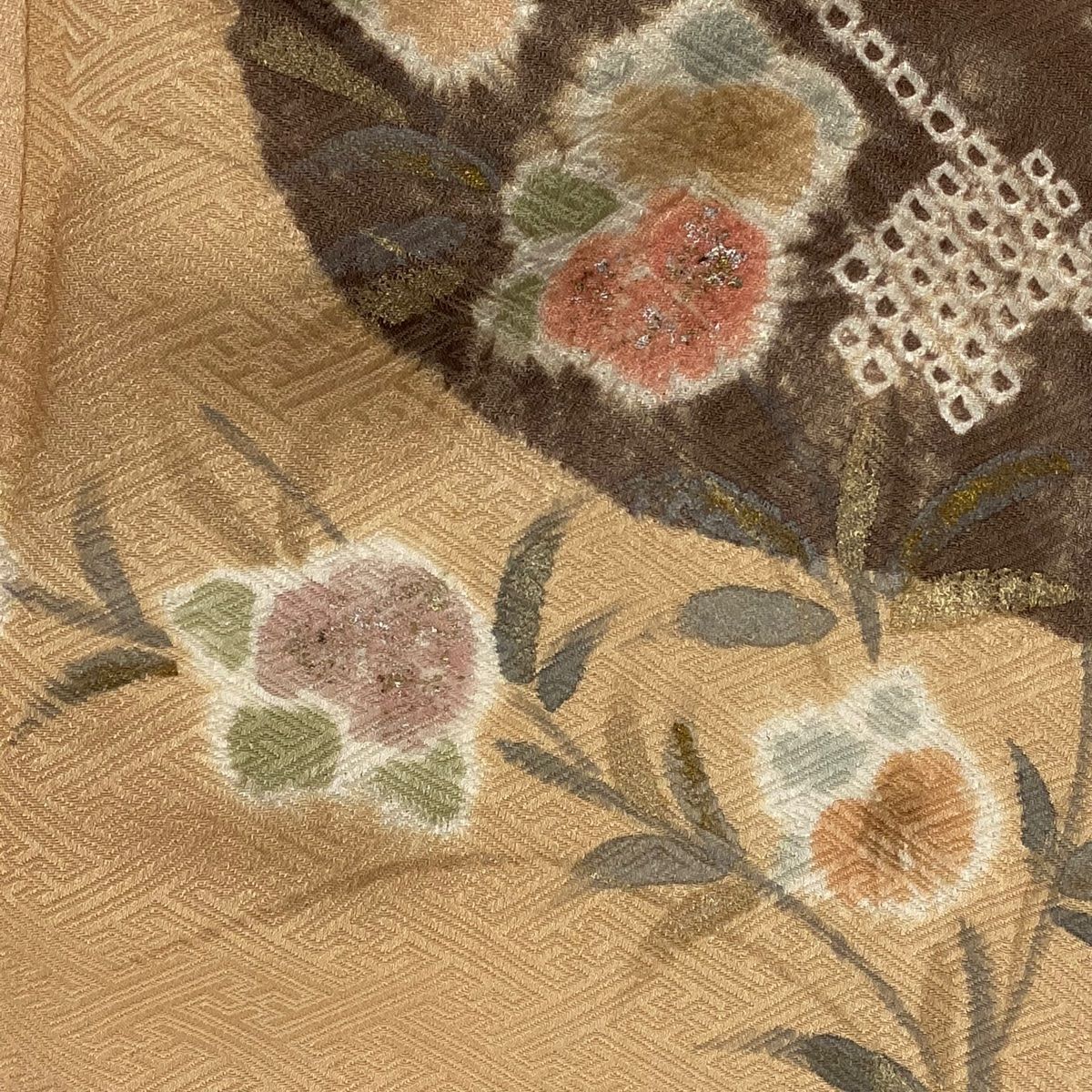 訪問着 身丈163.5 cm 裄丈64 M 袷 枝花 流水 絞り 金銀彩 薄オレンジ 正絹 秀品