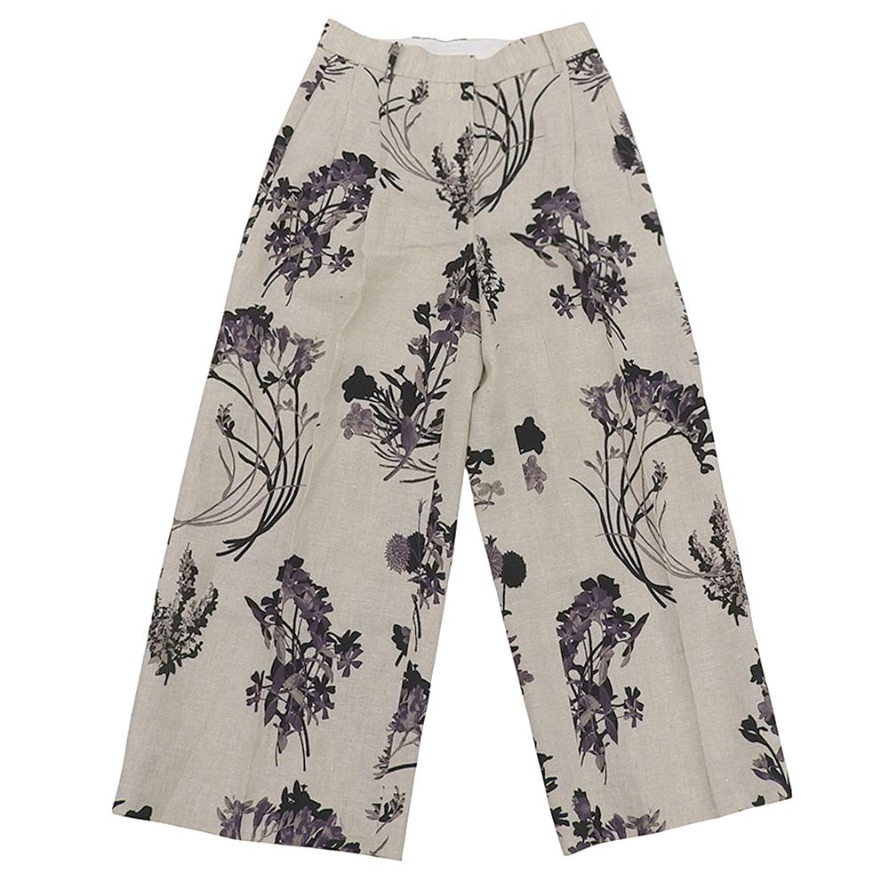 ebure エブール フローラルプリント リネン ワイドトラウザー ボトムス レディース ベージュ系 36