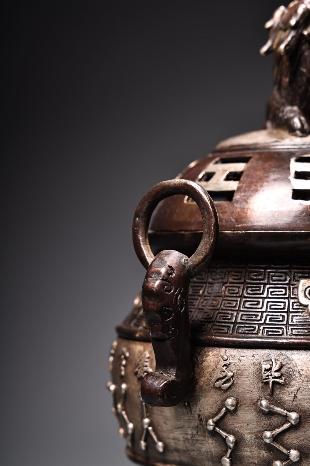 旧家蔵出し 銅製 銀鍍 雙耳 八卦三足熏香炉 香道具 仏具 仏具一般 供養品 古 収集家