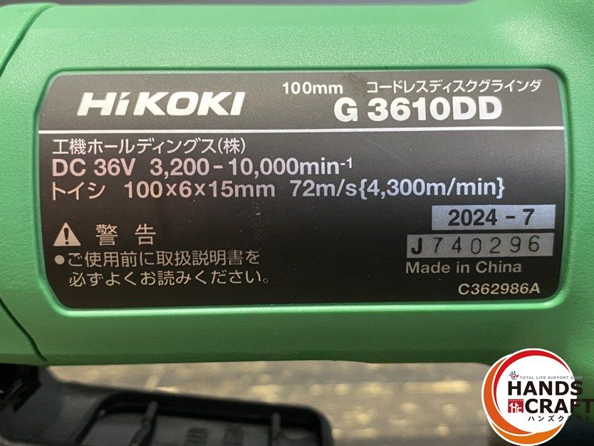 HiKOKI ハイコーキ G 3610 DD 2 XPZ ディスクグラインダ 100 mm バッテリー 36 V-2.5 Ah 18 V-5.0 ×2 充電器 ケース付