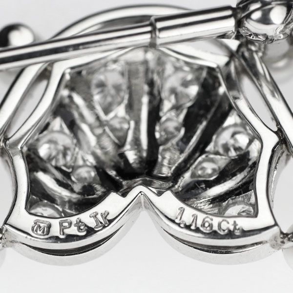 ミキモト Pt アコヤベビーパール ダイヤモンド ブローチ兼帯留め 径約2.6 mm D 1.16 ct