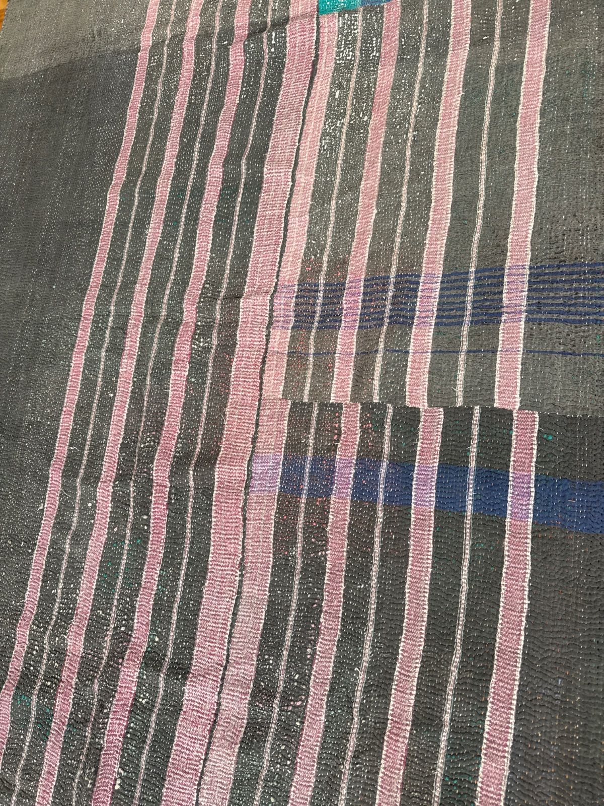 G 204 グドゥリー マルチカバー マルチマット ラグ ヴィンテージ カンタ刺繍 ボロ インド ビンテージ BORO アンティーク シャビーシック ラリーキルト 手縫い 刺し子 ハンドメイド 刺子 絨毯 はぎれ 古布 パープル グリーン
