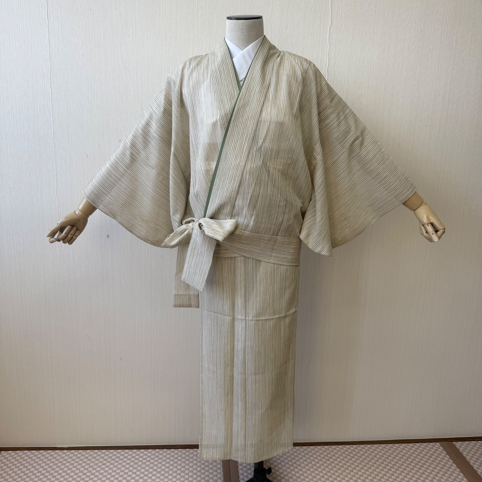 夏物の薄い生地で、涼しげな色合いの縦縞です。