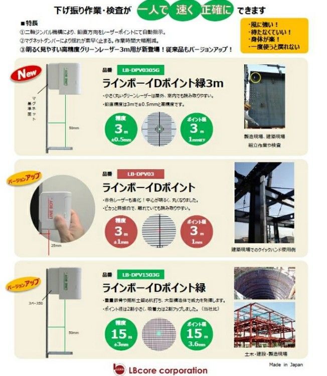 LBコア レーザー下げ振り ラインボーイDポイント緑セット LB ピカッと目盛PM 25 W クイックハンドQH 90 ハードケースHC 620 内装工事 土木 建築 測量