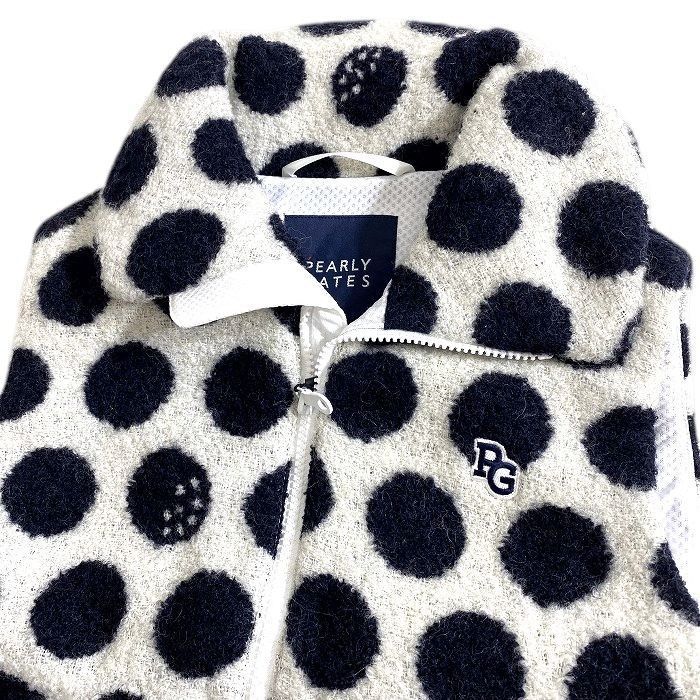 パーリーゲイツ ゴルフ 軽量保湿素材 リングチェック BIGドット柄 総柄 ダブルジップ 中綿入り ベスト ゴルフウェア レディース 055-2258108 定価3.8万 オフホワイト ブラック 042 51021 w 03
