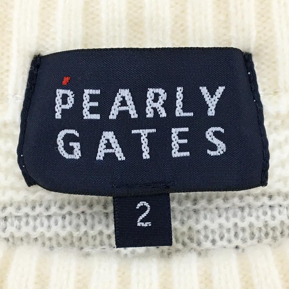 超 パーリーゲイツ セーター 白×ネイビー 星柄 ウール混 ニット レディース 2 L ゴルフウェア PEARLY GATES