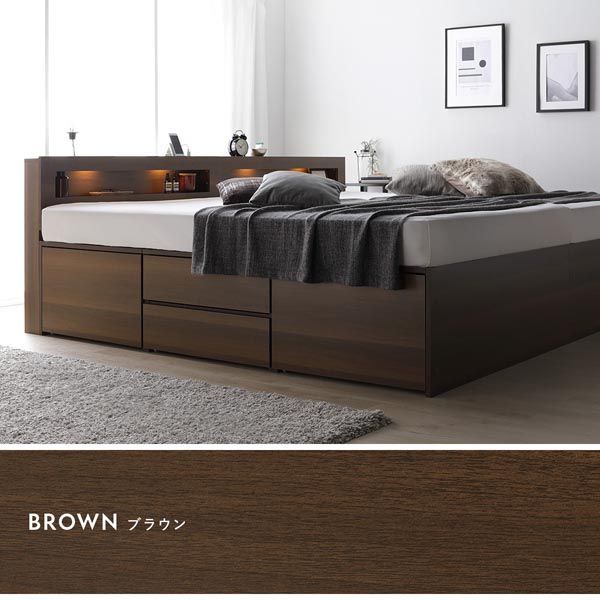 照明宮付 チェスト ベッド 通常丈ワイドキング240 S D ホワイト 3つ折りポケットコイルマットレス付き 大容量 収納ベッド すのこ 寝具 組立品