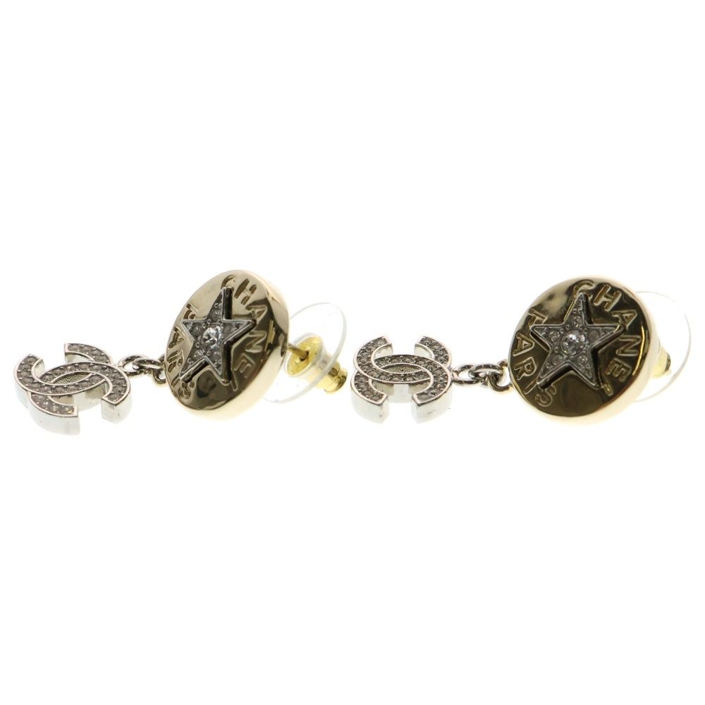 CHANEL シャネル ココマーク ラインストーンピアス イヤー シャンパンゴールド B 25 A