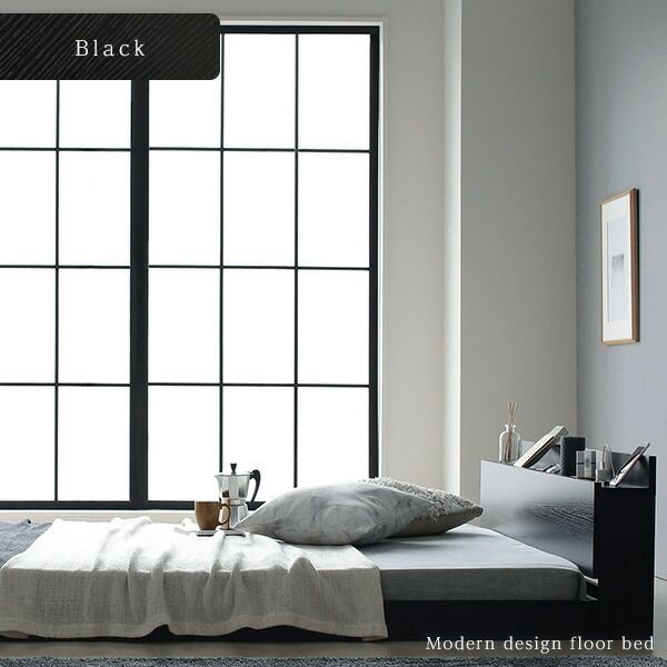 ベッド 低床 ロータイプ すのこ 木製 宮付き 棚付き コンセント付き シンプル グレイッシュ モダン ブラック セミダブル ベッドフレームのみ