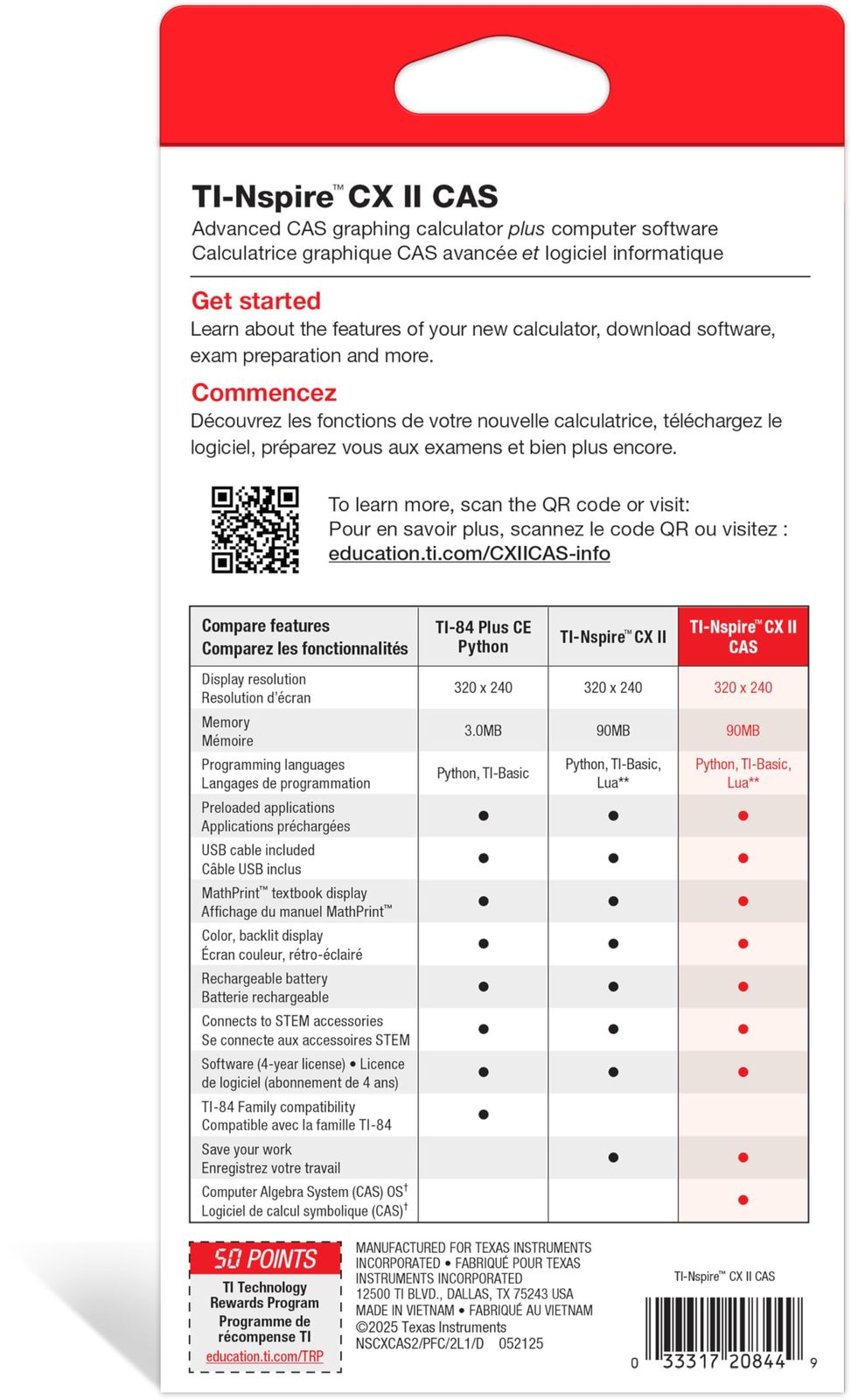 Texas Instruments テキサス インスツルメンツ TI-Nspire CX II CAS グラフ計算機 学生用ソフトウェア付き PC Mac