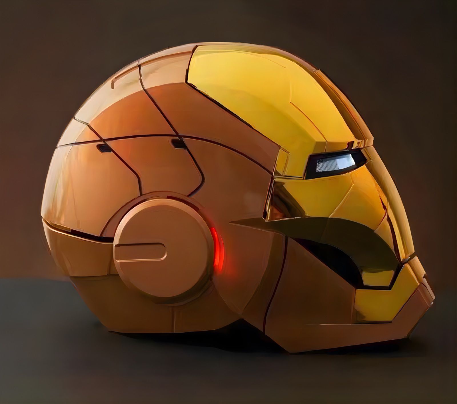 アイアンマン リアルマスク ゴールドメタリック メット 等身大 マーベル トニー スターク LED発光 自動作動 コスプレ 仮装 インテリア ironman
