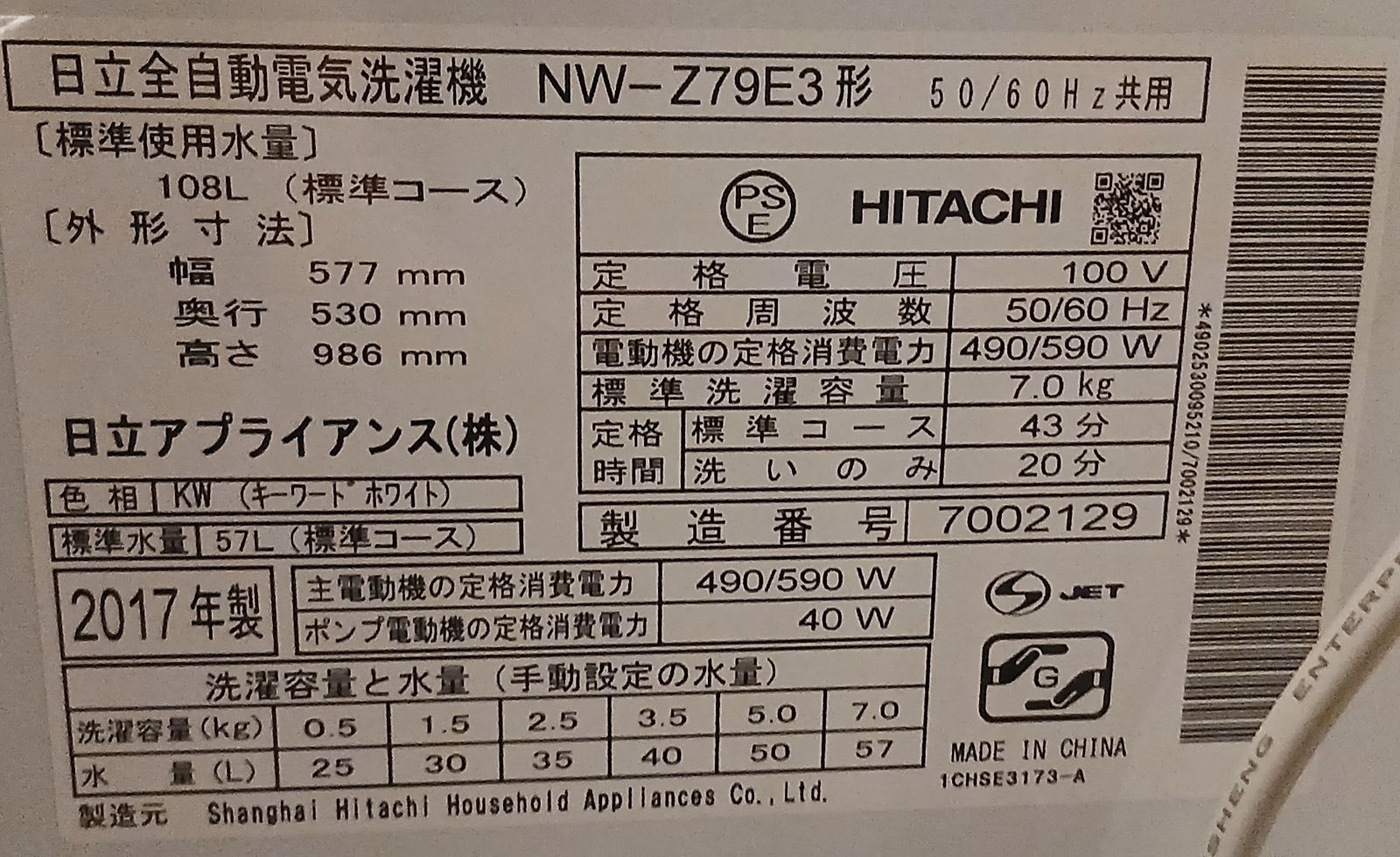 日立 洗濯機 容量7 kg 2017年製 NW-Z 79 E 3 分解洗浄 なセット値引きも 概要欄をご一読ください 一人暮らし コンパクト セット